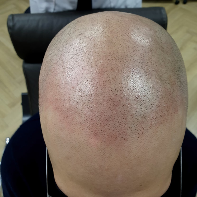 20岁出头,为了矫正M型脱发、降低额头高度,决定植发,第一次到医院就诊时,医生护士都很有信心地讲解,马上手术。 之后第2周摘除了结痂,与其他医院不同,被告知可以开始喝酒和吸烟,从第1个月开始移植头发开始脱落,目前几乎没有头发。