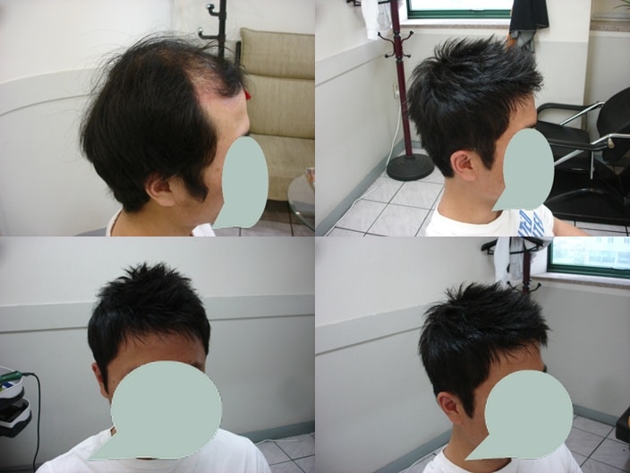 20岁出头,为了矫正M型脱发、降低额头高度,决定植发,第一次到医院就诊时,医生护士都很有信心地讲解,马上手术。 之后第2周摘除了结痂,与其他医院不同,被告知可以开始喝酒和吸烟,从第1个月开始移植头发开始脱落,目前几乎没有头发。