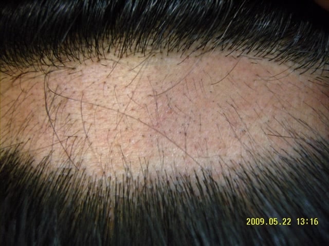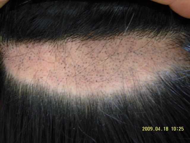 20岁出头,为了矫正M型脱发、降低额头高度,决定植发,第一次到医院就诊时,医生护士都很有信心地讲解,马上手术。 之后第2周摘除了结痂,与其他医院不同,被告知可以开始喝酒和吸烟,从第1个月开始移植头发开始脱落,目前几乎没有头发。