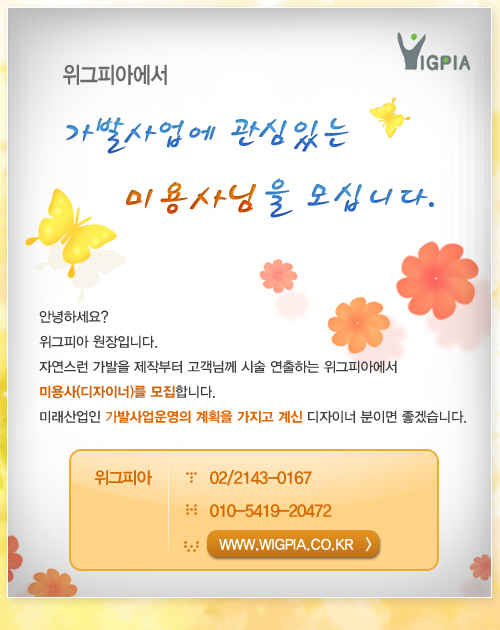 위그피아에서 가발사업에관심있는 미용인을 모십니다