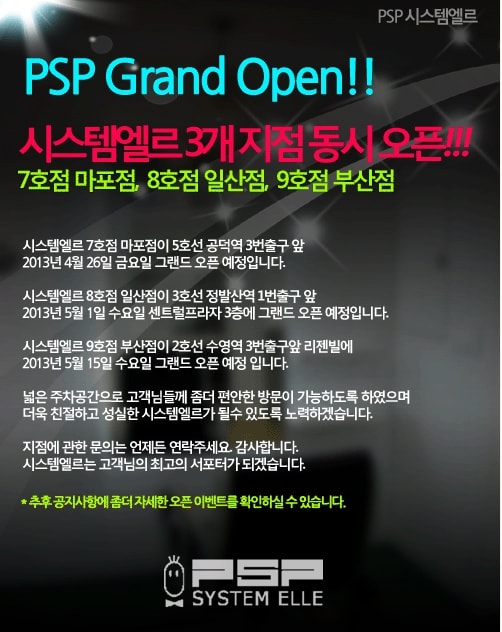 시스템엘르 7,8,9호점 동시 오픈 공지합니다.