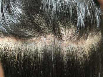20岁出头,为了矫正M型脱发、降低额头高度,决定植发,第一次到医院就诊时,医生护士都很有信心地讲解,马上手术。 之后第2周摘除了结痂,与其他医院不同,被告知可以开始喝酒和吸烟,从第1个月开始移植头发开始脱落,目前几乎没有头发。