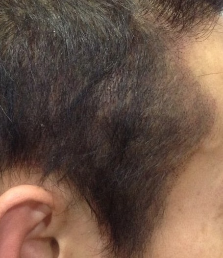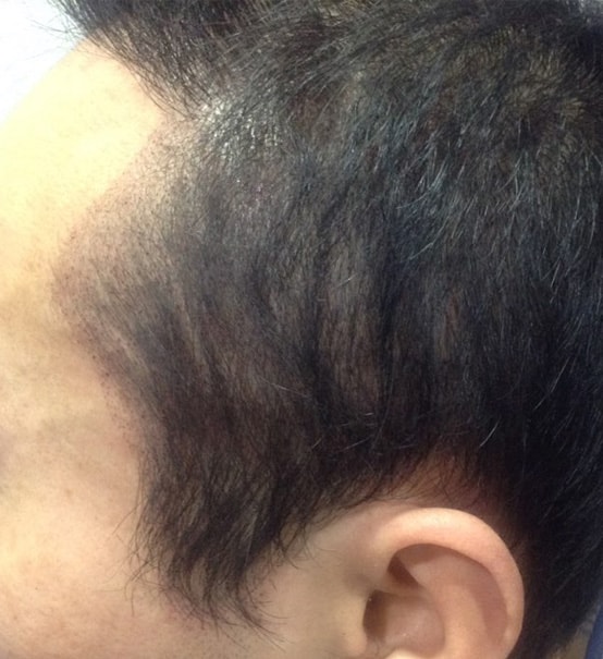 20岁出头,为了矫正M型脱发、降低额头高度,决定植发,第一次到医院就诊时,医生护士都很有信心地讲解,马上手术。 之后第2周摘除了结痂,与其他医院不同,被告知可以开始喝酒和吸烟,从第1个月开始移植头发开始脱落,目前几乎没有头发。