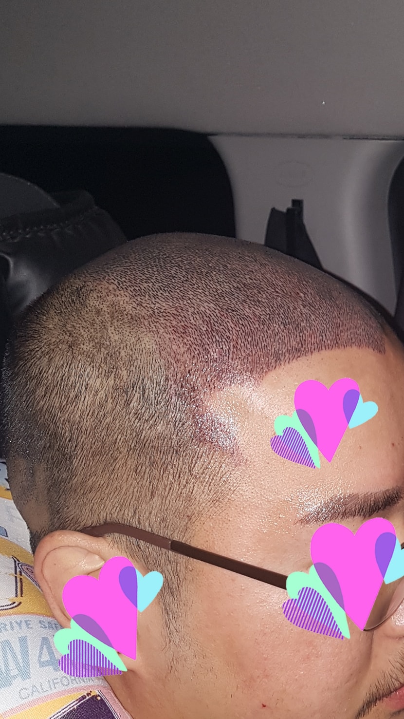 新发毛发1800毛囊非切开毛发移植后期。 虽然没有脱发症状,但由于先天前额头线条向上,在因宽阔的额头而苦恼的时候,被推荐给NEWHAiR 植发中心接受了手术。 因为对留下疤痕很敏感,所以即使发生追加费用,也选择了非切开,咨询也很顺利。 和院长商谈的时候虽然时间不长,但是及时了解了我苦恼的部分,所以很开心。 手术完全剃光了,大概花了8个小时左右。 到第3天为止头皮肿得很厉害,从第4天开始浮肿本身恢复了85%~90%的正常。虽然还有很多感觉迟钝的部分,头发采集的部分也有疼痛,但好像还可以坚持下去。 虽然接受手术还不到一周,但希望能漂亮地站稳脚跟。