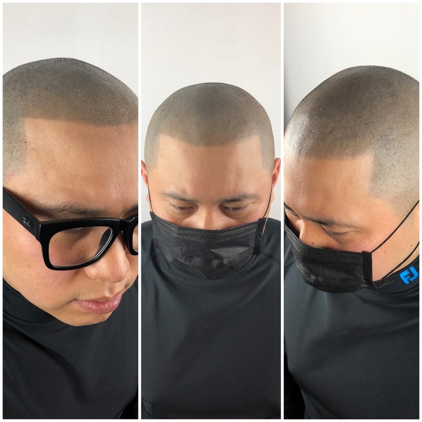 新发毛发1800毛囊非切开毛发移植后期。 虽然没有脱发症状,但由于先天前额头线条向上,在因宽阔的额头而苦恼的时候,被推荐给NEWHAiR 植发中心接受了手术。 因为对留下疤痕很敏感,所以即使发生追加费用,也选择了非切开,咨询也很顺利。 和院长商谈的时候虽然时间不长,但是及时了解了我苦恼的部分,所以很开心。 手术完全剃光了,大概花了8个小时左右。 到第3天为止头皮肿得很厉害,从第4天开始浮肿本身恢复了85%~90%的正常。虽然还有很多感觉迟钝的部分,头发采集的部分也有疼痛,但好像还可以坚持下去。 虽然接受手术还不到一周,但希望能漂亮地站稳脚跟。