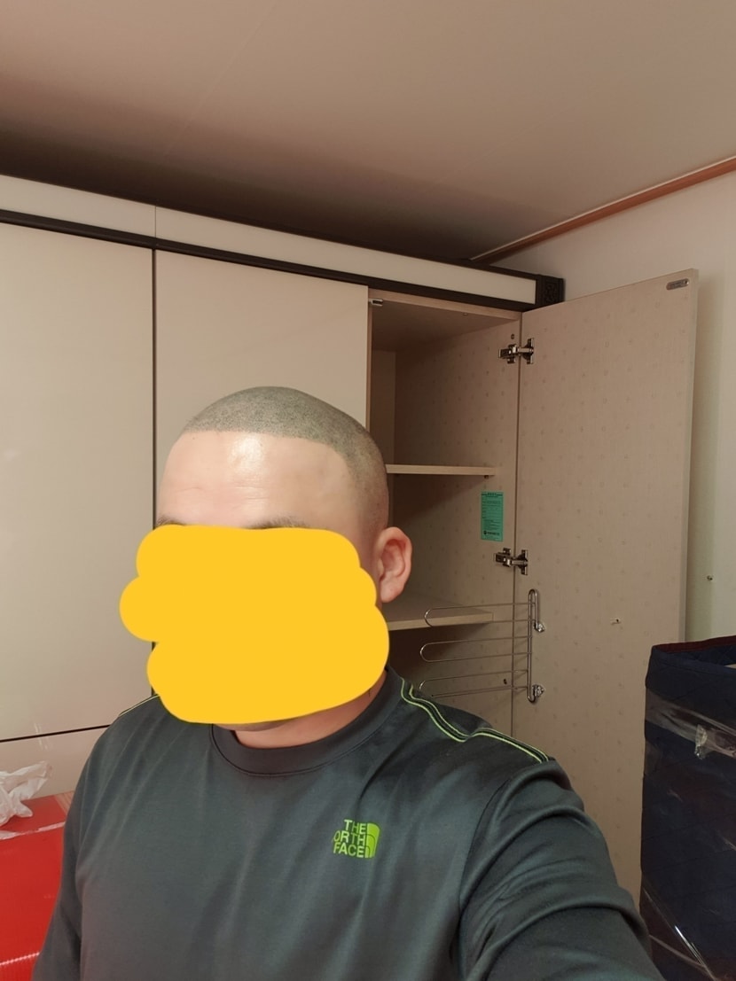 新发毛发1800毛囊非切开毛发移植后期。 虽然没有脱发症状,但由于先天前额头线条向上,在因宽阔的额头而苦恼的时候,被推荐给NEWHAiR 植发中心接受了手术。 因为对留下疤痕很敏感,所以即使发生追加费用,也选择了非切开,咨询也很顺利。 和院长商谈的时候虽然时间不长,但是及时了解了我苦恼的部分,所以很开心。 手术完全剃光了,大概花了8个小时左右。 到第3天为止头皮肿得很厉害,从第4天开始浮肿本身恢复了85%~90%的正常。虽然还有很多感觉迟钝的部分,头发采集的部分也有疼痛,但好像还可以坚持下去。 虽然接受手术还不到一周,但希望能漂亮地站稳脚跟。