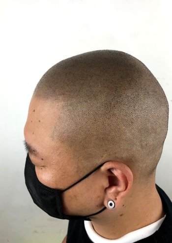 新发毛发1800毛囊非切开毛发移植后期。 虽然没有脱发症状,但由于先天前额头线条向上,在因宽阔的额头而苦恼的时候,被推荐给NEWHAiR 植发中心接受了手术。 因为对留下疤痕很敏感,所以即使发生追加费用,也选择了非切开,咨询也很顺利。 和院长商谈的时候虽然时间不长,但是及时了解了我苦恼的部分,所以很开心。 手术完全剃光了,大概花了8个小时左右。 到第3天为止头皮肿得很厉害,从第4天开始浮肿本身恢复了85%~90%的正常。虽然还有很多感觉迟钝的部分,头发采集的部分也有疼痛,但好像还可以坚持下去。 虽然接受手术还不到一周,但希望能漂亮地站稳脚跟。