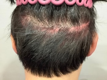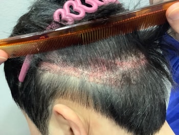 被淘汰的部分头发已经... 开始长了一定程度。 好像听说3个月前都会淘汰成长 我的头发长得好快啊~~ 但是移植部位的皮肤还是红的 好像还需要点时间~ 希望快点长大~~~