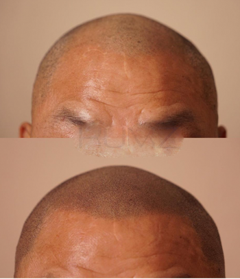 20岁出头,为了矫正M型脱发、降低额头高度,决定植发,第一次到医院就诊时,医生护士都很有信心地讲解,马上手术。 之后第2周摘除了结痂,与其他医院不同,被告知可以开始喝酒和吸烟,从第1个月开始移植头发开始脱落,目前几乎没有头发。