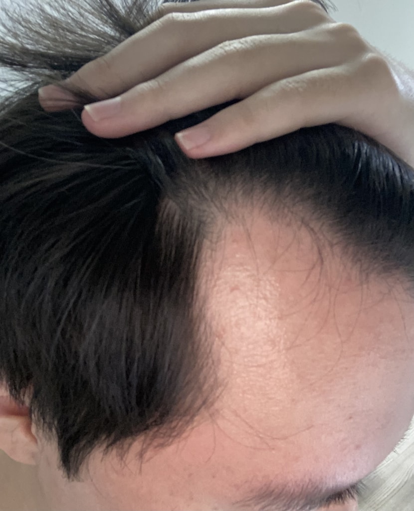 我爸爸那边脱发遗传很强 从高中开始就很早 用对脱发有好处的护发产品 努力管理 虽然试过 但是从23岁开始发际线就逐渐变高了我在机场上班 经常做发型 想在年纪更大之前拥有没有m字的发际线  苦恼了很久,在美发店接受了咨询,接受了手术。就像照片上看到的一样 额头线条上扬的 所以和院长商谈的时候用1400个毛囊进行移植 说看起来最自然 所以决定做移植手术 结束后看了镜子 感觉手术的方向很好 挺好的。女朋友也说变年轻了,比我还喜欢呢。我觉得幸好早点做了。移植后没有疼痛,有点痒? 除此以外 没有 开了6个月的处方抹Minoxidil的药 我会按照院长告诉我的方法认真管理。 虽然只过了两周 但还是能按照种下去 我会好好管理的。
