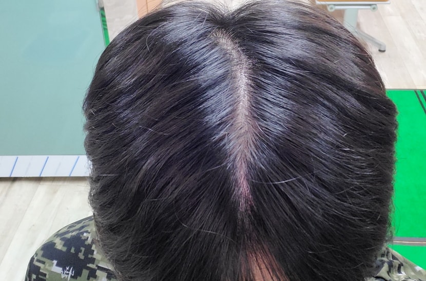 头发不再像以前那样掉下来是好事,但是粗发也会掉下来,所以每天都能看到发缝线头皮。