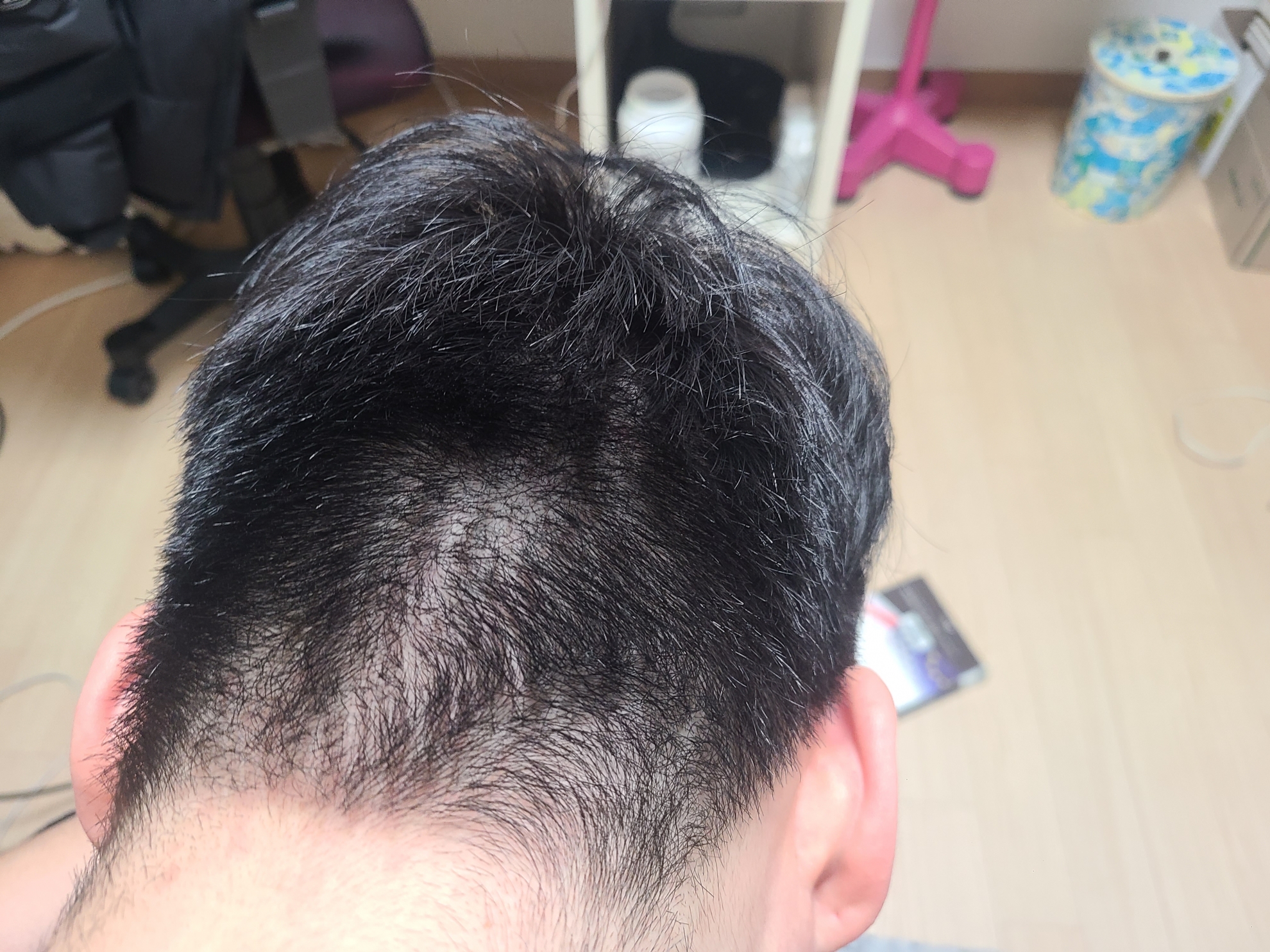 术后1个月增加简要后期。 拆线2周后去医院做角质护理(?) 据说是20万韩元的服务,但只要喷洒药品、洗头、晒10分钟红外线(如果让我交钱,就绝对要收...) 拍了几张照片,拿了脱发药处方就下来了。 请9个月后再来。 一个月左右,黑暗期似乎开始了。 使用指纹洗发水后,无论是原有毛发还是移植毛发,都会掉很多。 洗发水时切开/移植部位还有点疼痛。