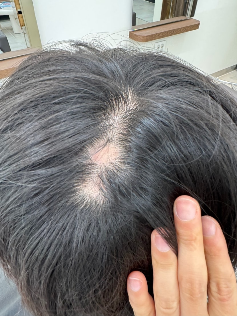 治疗前 - 第3个月 - 第9个月 我的脱发烦恼是从30岁出头开始的 刚开始以为头发会掉下来 随着时间的流逝 我的额头也渐渐上去了   从那时候开始服用非那斯特里德 将近8年一直在吃 不知道是不是因为那个原因 掉下来的速度多少有点控制住了 没有太大的不满 一直维持着   然后周围的人都说Dutasterid效果更好 想更加积极地管理 所以换了药 服用了2年左右,我的副作用非常明显。   身体很奇怪,总是下垂,没有力气,感情起伏不定,也产生了忧郁感。 不是单纯的错觉 是因为药 说实话 发毛效果也没有想象中那么好 结果从6个月前开始重新回到了非那斯特里德 万幸的是身体状态重新变好了   局部Minoxidil也一起使用过 因为每天坚持涂抹没有想象中那么容易 所以只间歇性地使用了   觉得是不是在做不适合我的管理 所以去咨询了 院长说现在的状态不是很严重   还没有进行很多 从现在开始好好管理的话 以后也能维持下去   所以这次不是单纯依靠药物 想积极改善头皮状态 然后我听了干细胞治疗的说明后决定总共接受20次   说实话 在接受治疗之前 有过对效果的怀疑 '我果真要接受这种手术吗?' 有了这种想法 但是现在确实很满足   自从开始治疗6个月之后 感觉头皮比以前没有那么敏感了 发丝也变厚了   洗头的时候掉下来的量也比以前减少了 和每次照镜子的时候头顶明显裂开的时期相比 感觉现在维持得很稳定   周围的人都说好多了 自己也确实有了自信   这次再次体会到了在进行脱发之前 管理头发真的很重要 以前以为只吃药就没事了 现在知道了保持头皮环境健康也很重要   有同样苦恼的朋友们 在太晚之前先去医院诊断一下状态 找到适合我的治疗方向是最好的 希望剩下的次数也能考好 希望有一天不用担心头发