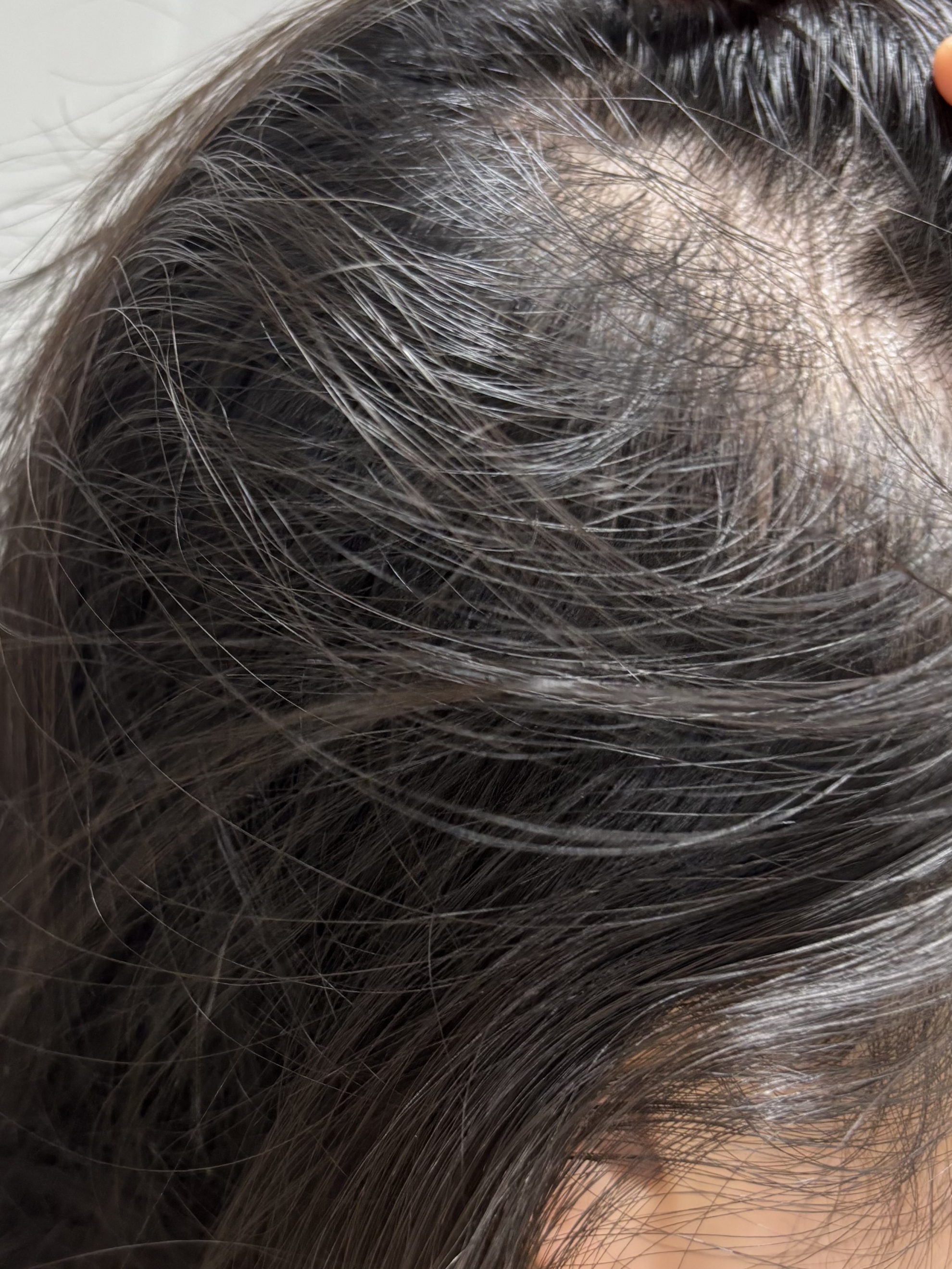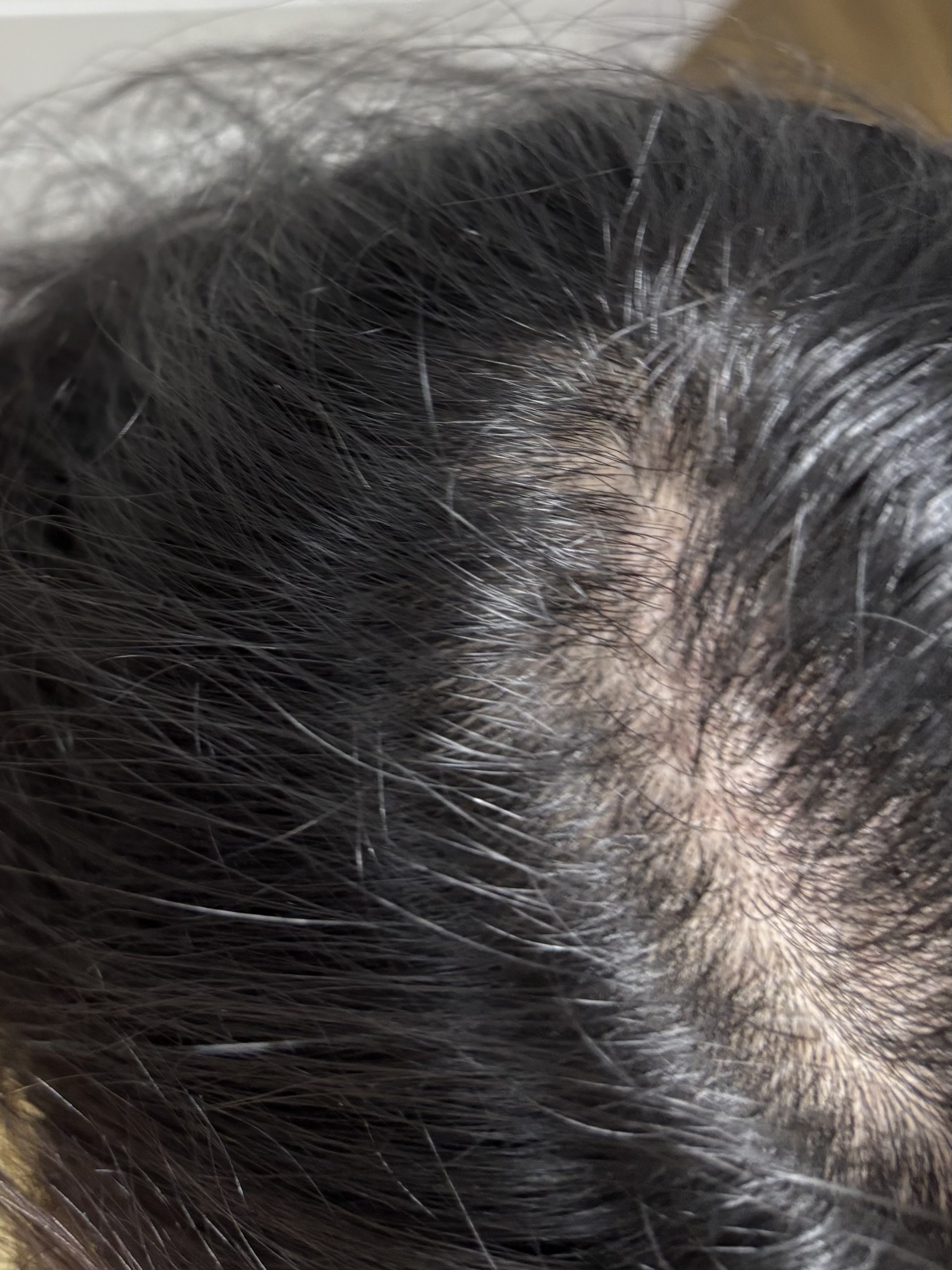 정수리부터 가르마 (가마 때문에 더 심해보이는 부위있는데 안찍음..)