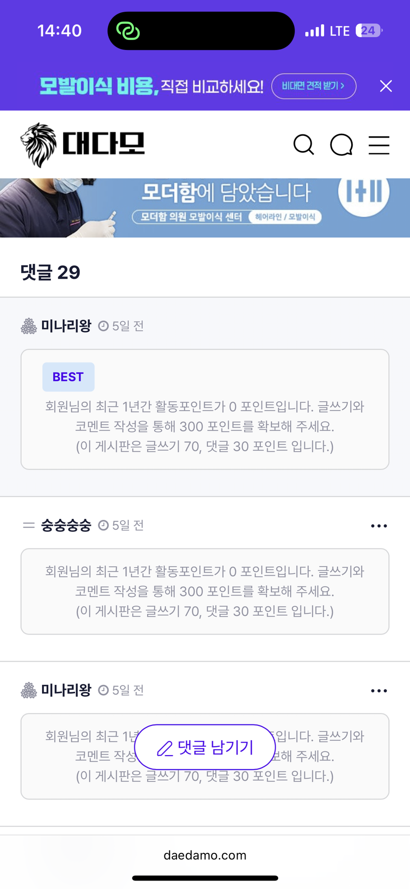 大家好。24年10月接受手术,上传到10个月时间的进展情况后记。首先,我从军队回来后,M型脱发进程加剧,药物治疗也没有进展,所以接受了手术。本人采用切开方式施行3600毛手术。 价格在400万韩元左右。(https://daedamo.com/photo2/597107 : 3个月时间点的进行后记链接!)Before : After : Before/After差异很明显吧? 真是大满足!!! 手术前3个月还不太确定,但6个月左右确实感觉到了! 真是长头发啊!手术后需要严格管理吗? 也不是那样的。 只要好好吃脱发药就会茁壮成长(当然,我不吸烟/不喝酒也会有影响吧)我写这篇文章的理由也很明确。 别有压力,还是种吧!m字脱发特性上,虽然放下头发的话看不清,但是说实话,很难隐藏空着的样子啊呵呵...(因为以前的工作是现场工程师,所以去了现场回来后湿透了)。 脑际 嗖嗖 遮住空着的额头 辛苦的记忆 呜呜)有点夸张了,可以当做精神压力治疗费用来做手术,自信感差异很大! 毛发移植如果有苦恼的朋友们,希望你们能尽快接受手术,变得幸福~非常感谢毛多兀醫院杨维君老师对P.S的诊疗也很亲切,并取得了很好的结果!