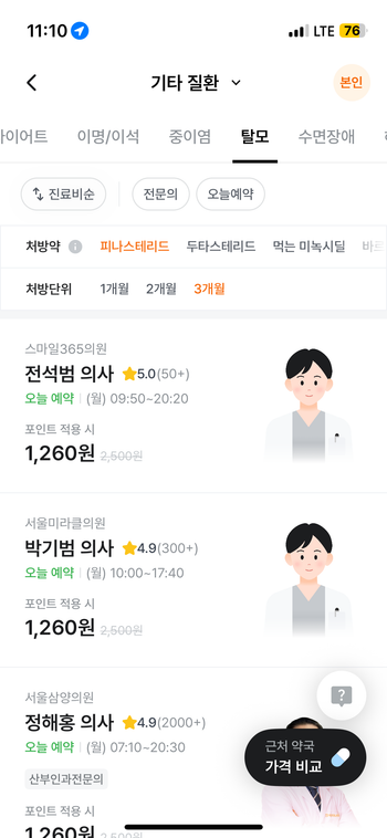 [Fuck脱发] 非面对面诊疗APP显示出血3个月的处方1260韩元