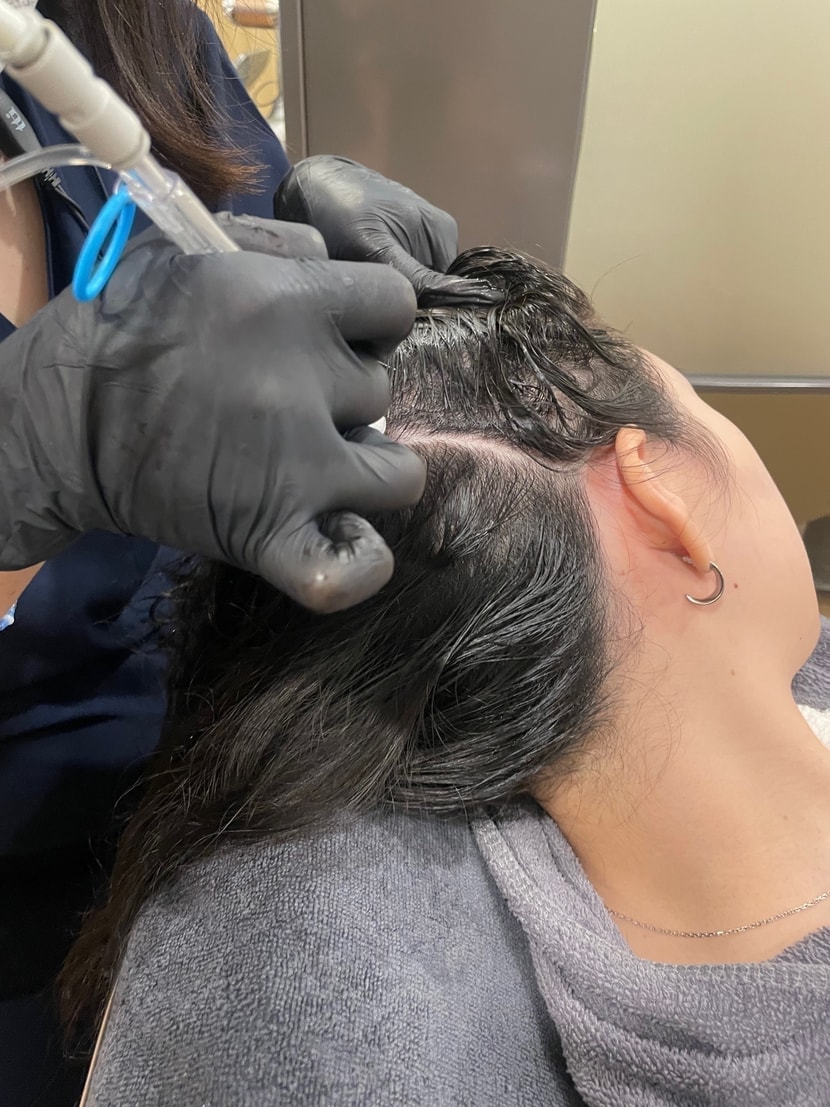 这次也和第一次做的时候一样 在头发部分喷了洗牙剂 让头发变凉 呵呵,我头皮发热,涂抹时变得凉爽,心情非常好~在冷却后的头发上,通过头皮敷剂浸泡头皮上的角质等老废角质。 蒸汽机刚开始可能是因为洗牙剂,感觉很清爽,但是越来越暖和,感觉有点困了,心里很舒服,呵呵,做完蒸汽后请管理好氧气喷射器。 接下来最担心的检查针呵呵呵呵之前,医生来检查我的头皮状态了。 呵呵,头皮问题比以前减少了呢呵呵呵,幸好,一周以来有没有规律地服药,有规律地生活习惯都仔细检查了哦! 问我有什么好奇的吗,头发好像长长了是因为心情吗,因为一周就长出来了,头发不容易这样啊,我啊。ㅠㅋㅋ 의사医生说,因人而异,有些人会立即见效,有些人只有坚持接受手术,最后才会见效。 我太着急了,呵呵呵,感觉就是那样,怎么办呢~ 现在才过了一周 所以现在判断还为时尚早总之一直躺着有点朦胧的状态看病,感觉今天也会生病。 打勾针... 感觉会很烫,为什么比上次收到的时候还好呢?! 现在才第二次,这么快就适应了吗?呵呵呵呵,虽然还是有点刺痛... 没有之前那么疼了,呵呵呵,然后戴着眼罩接受了红外线手术,今天的手术也结束了~时间很长,其实有点睡着了。 嘿嘿