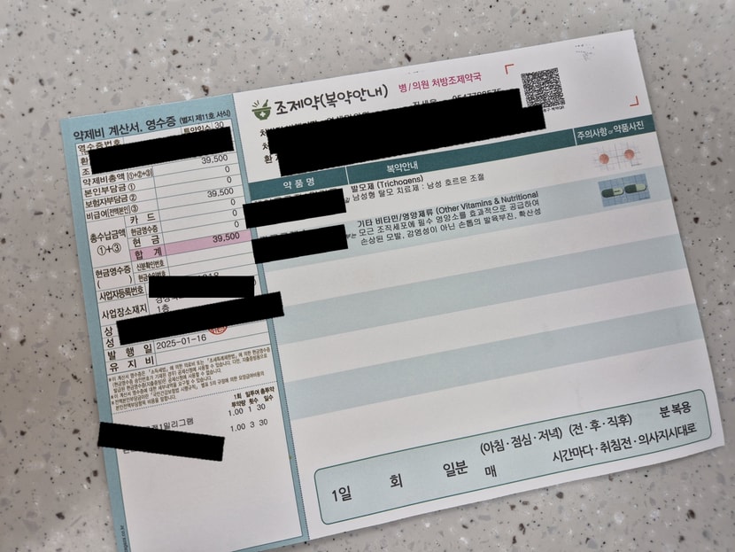 I received a month's worth of drugs like Propecia generic drugs + panidil, but it's less than 40,000 won.