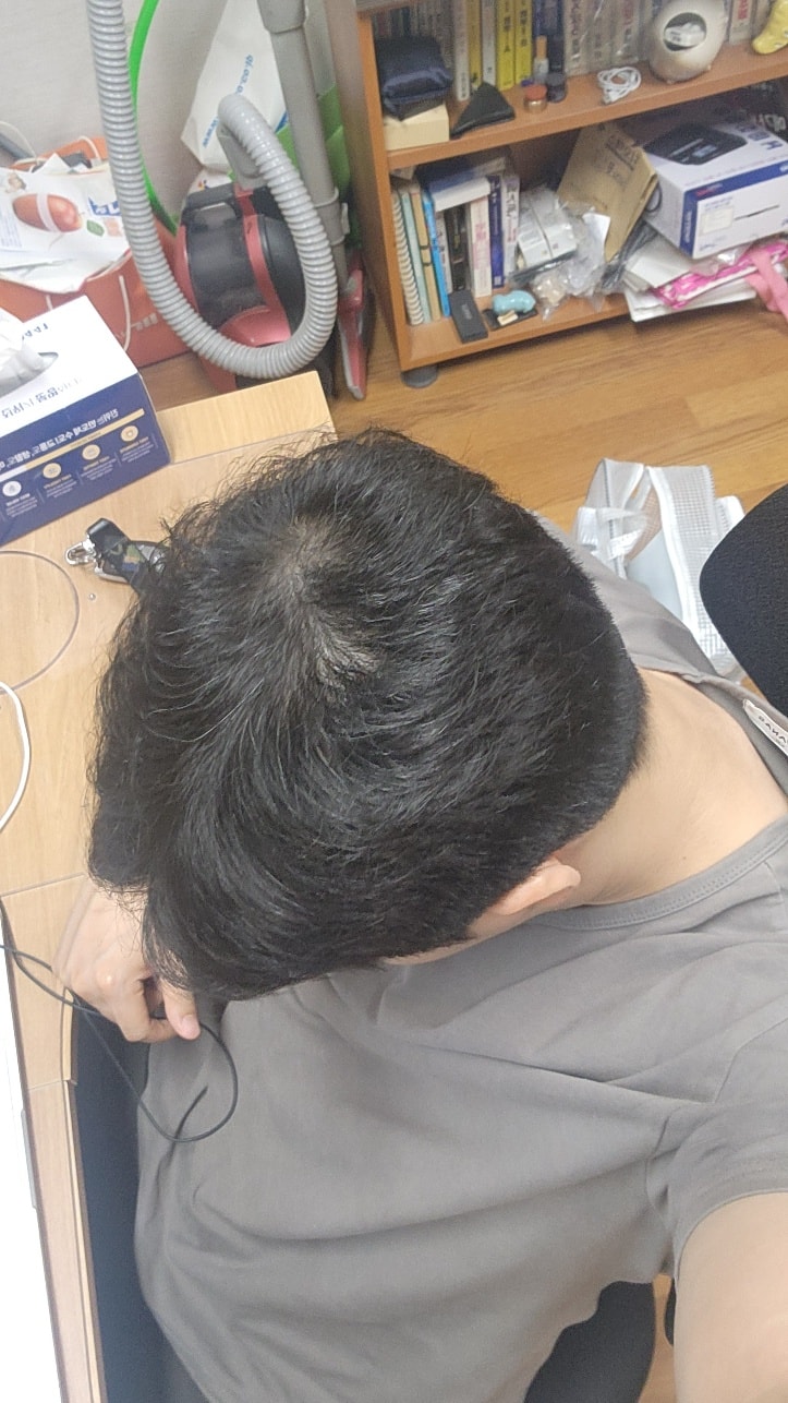One month after surgery, a brief review is added. Two weeks after pulling out the thread, I visited the hospital for dead skin care. It's a 200,000 won service, so I just spray the medicine, wash my hair, and soak it in infrared for 10 minutes. (If I pay for it, I'll get it approved...) I took a few pictures and got prescribed hair loss medicine and came down.. The next visit is in nine months. After about a month, the dark ages seem to begin. After the fingerprint shampoo, the existing hair and transplant hair fall out a lot. Slight pain in the incision/transplant area when shampooing.