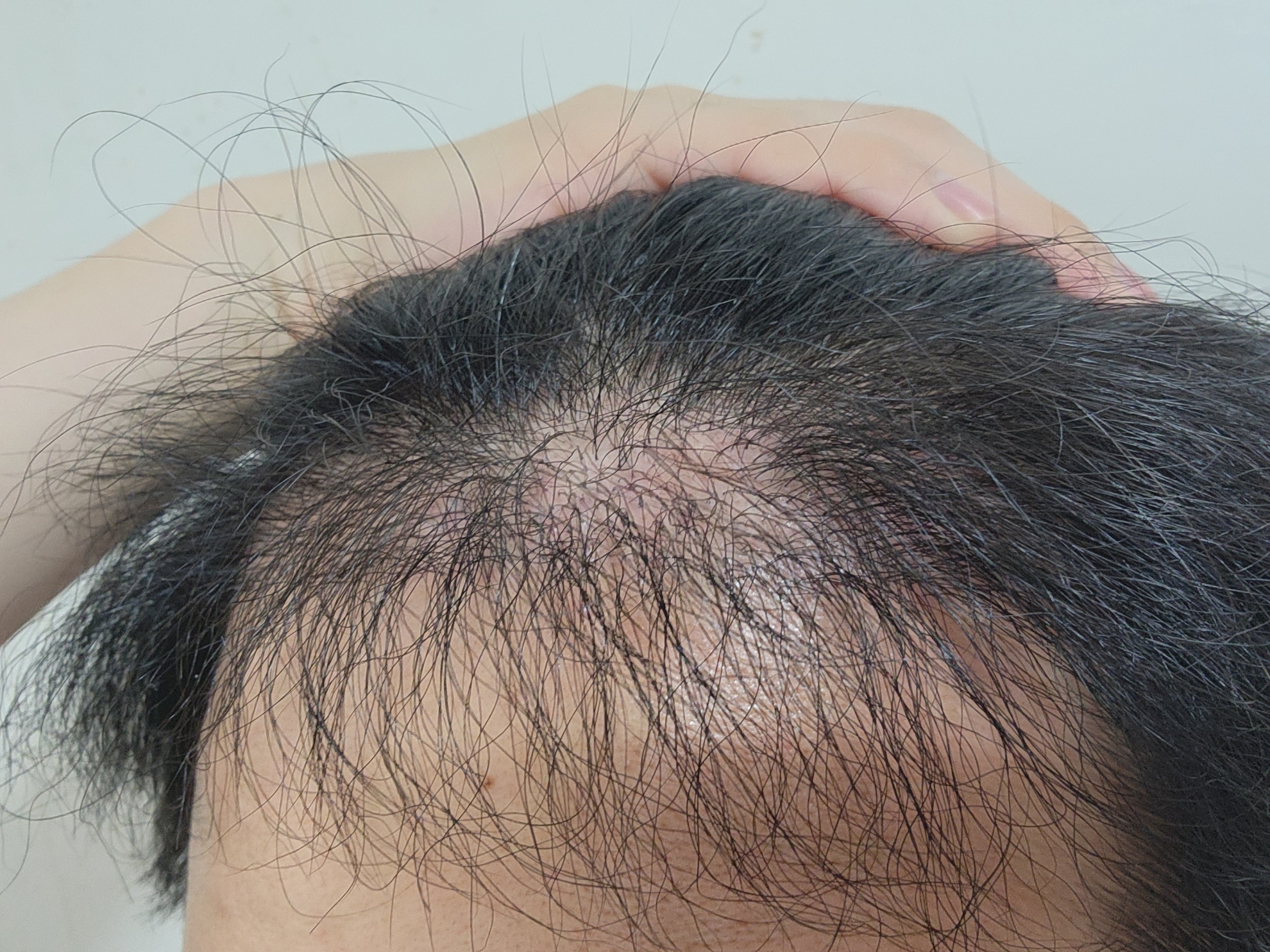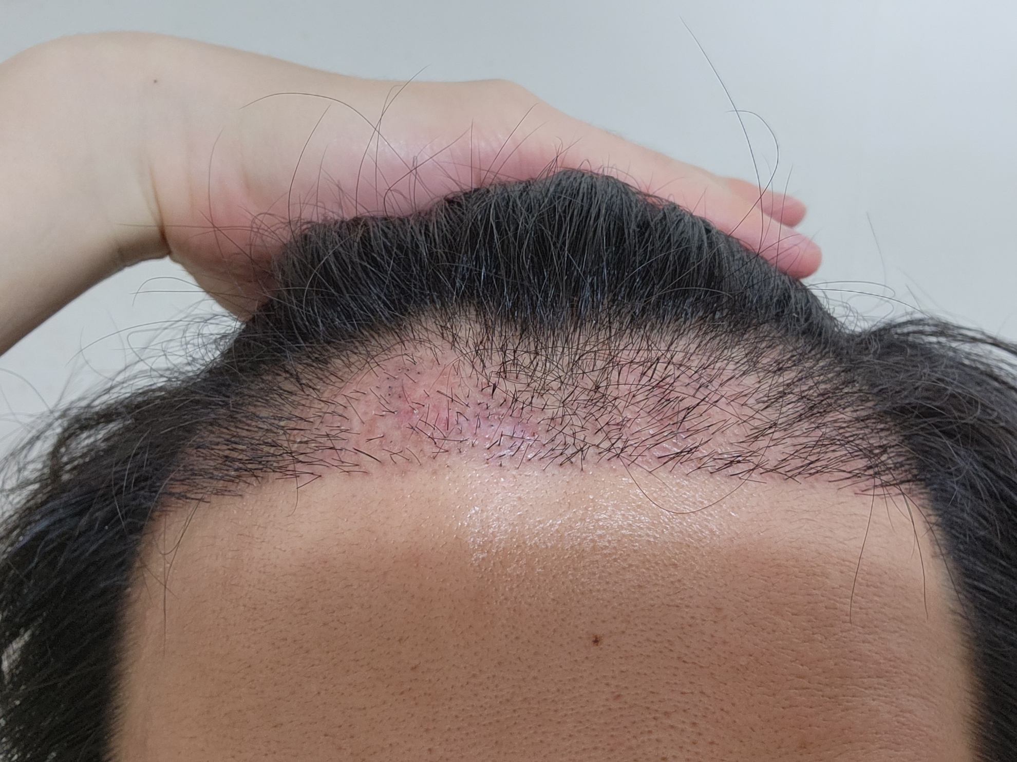 The forehead was wide, so I had a non-intersected hair transplant and it's been a year.