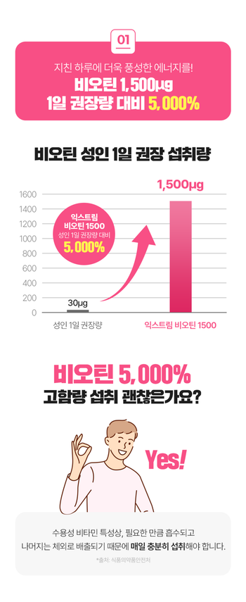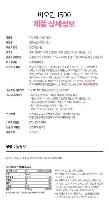 5 4 3 2 1 Manufacturer Eumseong Factory of Kolmar B&H Co., Ltd character a yellow-gray rectangular tablet that has its own flavor and is already odorless Functional raw materials biotin Ingestion method Take one tablet once a day and once a day with water. Functional information - Biotin: needed for fat, carbohydrates, protein metabolism and energy generation Precautions for ingestion 1) In the case of idiosyncratic and allergic constitution, sometimes individuals may show hypersensitivity reactions, so check the raw materials before eating.<br /> 2) Stop eating and consult a specialist in case of abnormalities ![]() ![]() ![]() ![]() ![]() ![]() ![]() ![]() 4.0