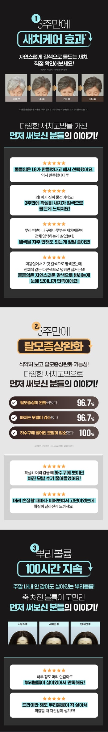 After massage like shampoo, leave it for 3 minutes before rinsing, and use it with treatment to improve the gray hair cover effect.Ingredients included