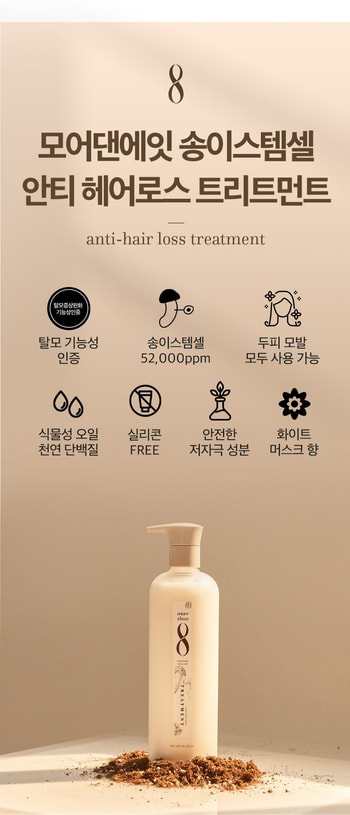 Purified water, pine mushroom mycelium culture (5.2%), cetearyl alcohol, ethylolivate, myristyl alcohol, oat leaf extract, methylpropanediol, betaine, mentol, 1,2-hexanediol, guahydroxypropyltrimonium chloride, panthenol, glycerylcaprylate, butylene glycol, shea butter, disodium edtia, avocado oil, hydrogenate vegetable oil, joa bark extract, olive tree leaf extract, glycerin, propanediol, propylene glycol, isopropyl glycol, isopropyl alcohol,Hydroxypropylcyclodextrin, chrysanthemum extract, B. bulgaris mugwort extract, sumioi extract, ginkgo tree leaf extract, pine leaf extract, mugwort leaf extract, heaven root extract, arrowroot extract, leuconostock/free fermented filter, bitter root extract, wool root extract, oak root extract, ash tree leaf extract,