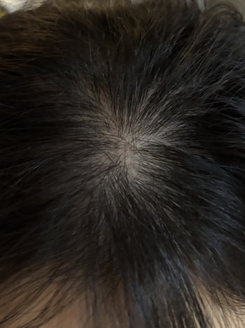 The top of the head is still very empty, but the thinning is reduced and the hair that fell out like a circle around the top of the head looks less empty.