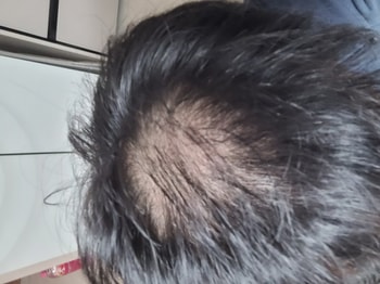 Previously, I was upset because of severe M-shaped hair loss, but recently, I'm more upset because the top of my head hair is worse