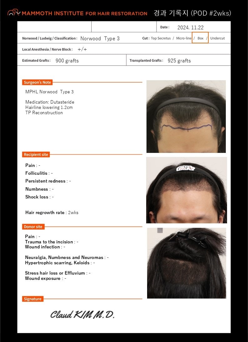 Busan Mammoth M-shaped hair transplant 14 days later, review
