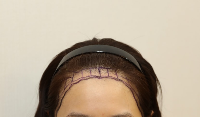 Hairline correction for incision, 1600 hair follicles (1888 hair follicles during surgery)