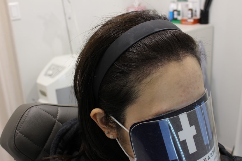 (ex. Emza hair loss, crown hair loss, frontal hair loss, wide forehead, female hair loss, hairline correction, not hair loss)