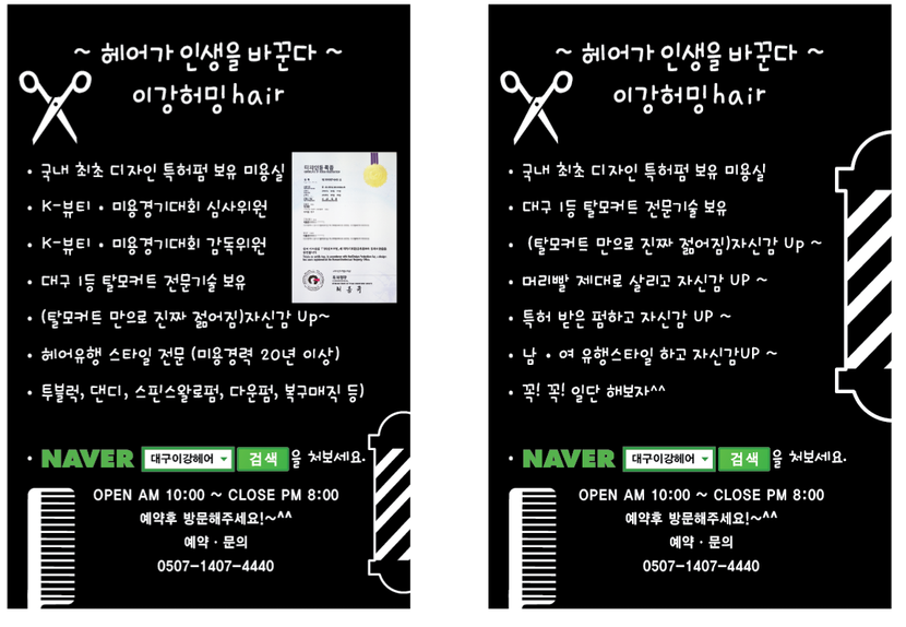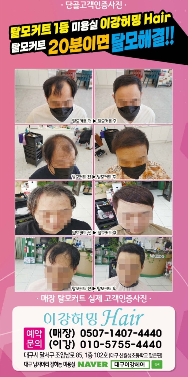 If you search for Naver search Daegu E-gang hair, you can see pictures and videos of hair loss customers.
