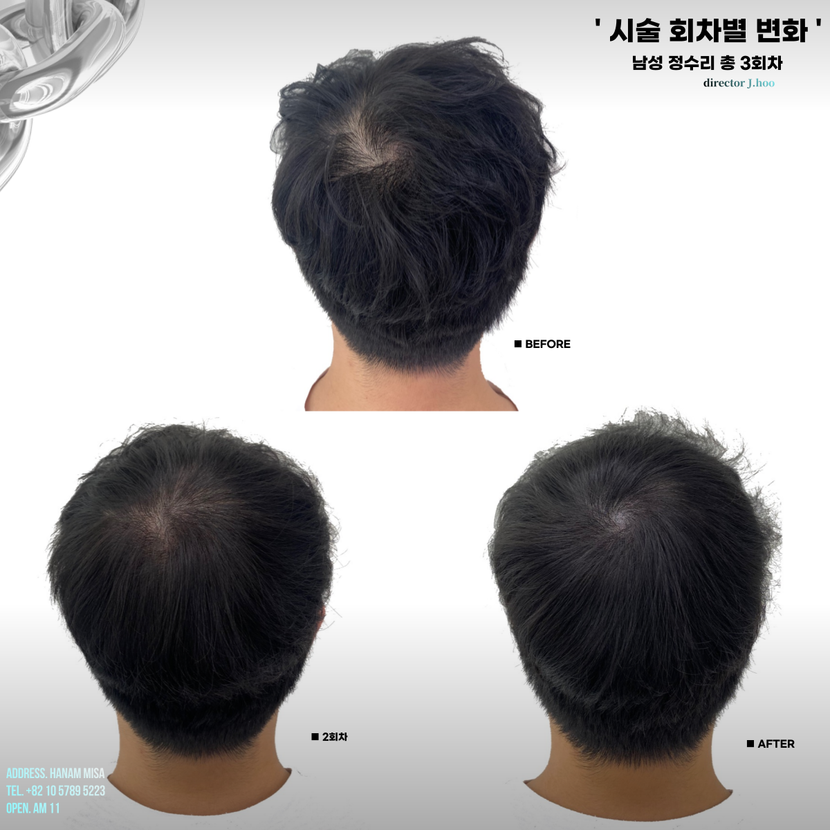 Hello!!It's been a month since I got my Hair Transplant!!!I'm in my first month and now my bangs are much more natural as I grow a lot, and now no one even knows if I've done Hair Transplant unless I put my hair up and show it to them lolIn the last review, the itchiness in the collection area was quite felt, but after some time, the itchiness almost disappeared and my hair grew, and now no one knows if I've had a Hair Transplant even if I look closely.In the third week, I visited the hospital once for scaling. When I came to the hospital, the CEO looked at the treatment and looked at the condition very closely at the hair transplant site.When I asked questions about what I was curious about or what I was concerned about, they answered very kindly, so I was very trustworthy. After the treatment, I moved to the shampoo room and got scalp scaling. First of all, I received a scalp regeneration laser. It was nice to lie down on a perm machine and be warm. The doctor in charge of exfoliating the surgery area very carefully You did something like soothing gel on your scalp, and wow, my scalp felt very cool and good!! I applied aroma oil to my throat and took a quick massage during the absorption time, and it was very paradise!! I was disappointed because I thought it was over after taking care of it once, but he said he had two more left I came home shouting very hard in my heart lol And as I entered my month, I was shaving my hair with my fingerprints every day, and I saw my bangs fall out every time I did it....It was very upsetting, but I was comforted that losing my hair was normal and I had to lose my hair to have healthy new hair again..In fact, I'm screaming in my heart. Maybe because it's only been a month, the dark ages haven't come, but when they do, oh, I'm already sadcryingThe hair transplant went well, so he told me to be careful of folliculitis as the most important follow-up care. (+) If you have follicular inflammation, it will come out red like a pimpleIf hair follicles rise on your head 10 days after surgery, you must apply the medicine you prescribed.You said it has a very big relationship with the birth rate. That's why my wife always looks at her hair in detail every morning and evening and applies it to areas of doubt!! Maybe that's why it doesn't stand out, but when I went for scaling this time, it was very well managed without folliculitis I heard it!!!We celebrated Chuseok in the third week after the surgery. So I asked my parents in advance not to tell my relatives about the hair transplant, and I was nervous about showing it as a surprise on the day of Chuseok, but no one really knew. So I was surprised to see my hair and Hair Transplant. It's only been three weeks, but if you don't tell me, I don't know. I was also surprised to see someone with a two-block cut. (I really didn't notice one person first.) My cousins also have some hair loss, and they all envy me where I did it!!Also, entering the third week, I was contacted that I could exercise now. I usually like exercise like running and crossfit, but when I get my hair wet from exercise, I always see a lot of empty spots in my hair, so it bothers me.. Now, like a miracle, even if my hair is wet, there is no empty place?? Wow, I felt very excited at this time. In my mind, I worked out thinking, "Hey, if I get wet in a year, I'll put my hair back like movie stars." LOLIt's only been a month so I don't know the exact progress, but so far I'm very satisfied!!!No one knows when I meet an acquaintance at work or going out unless I put my forehead over first. I just said, "You cut your hair coolly."When I go out, I don't have to hold my hair like I used to, even if the wind blows my head, so I don't care much. Even if I'm sweaty, I don't have to cover it with my hair, so I'm not stressed.Before the surgery, it was only yesterday that I was stressed about how much more hair I would lose in a year, but now I am very satisfied because I am excited about how much more I will be full in a year!!!!