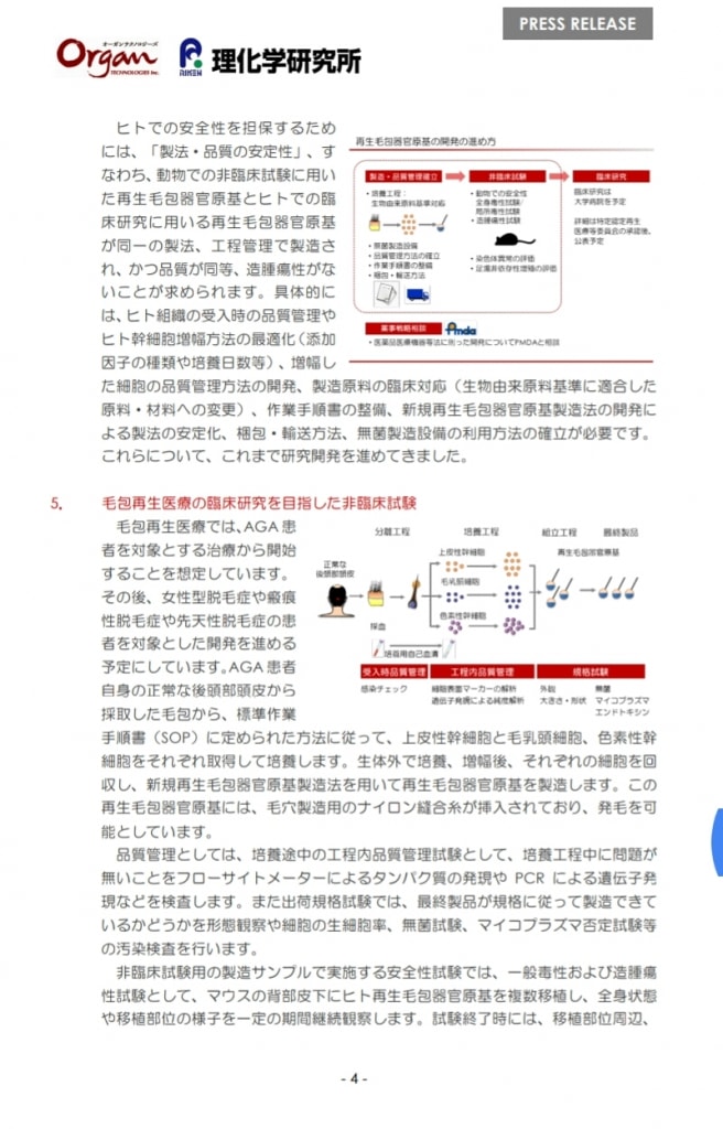 Professor Tsuji's team, who is working on hair follicle regeneration with Kyocera