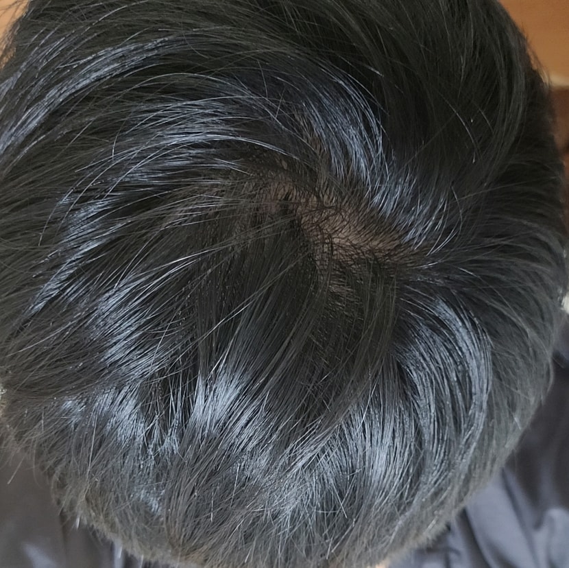 My friend is a hairdresser, so I asked as much as I could, and I trimmed the transplant area very carefully with scissors, and the back part (the hair follicle collection area) was gently done with a barricade.