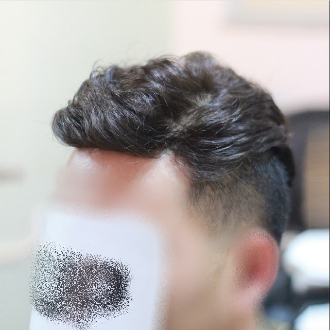 The final result is a bit disappointing due to the imbalance in the amount of hair on the left and right sides and the loss of hair