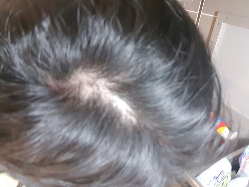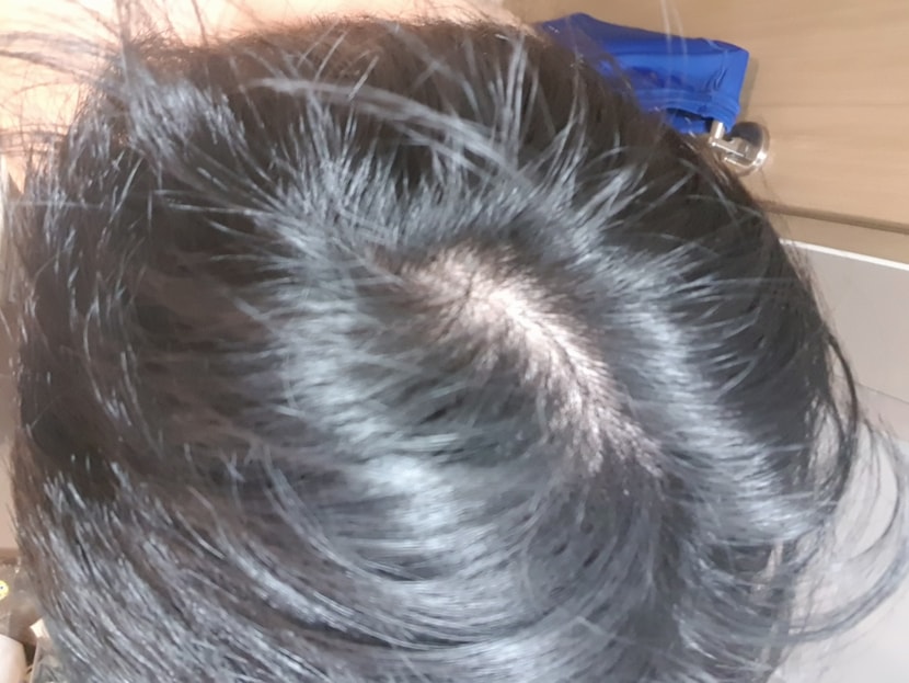 脱毛がもっとひどかった右側は少しまばらな部分があります。左側はもう目立たないほどよく定着したようです。薬を地道に飲むのが重要だというので、ちゃんと飲もうと努力中です。大金を使ったのに結果が満足してよかったです!