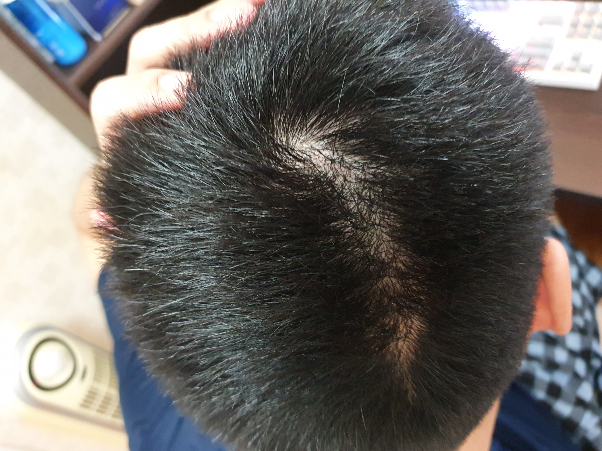 こんにちは. 手術してすぐに体験談を残そうと思ったのですが、簡単ではありませんでした。 それで、2週目の経過を報告してから体験談を書いてみます。 私は8月27日に植毛をしました。 時間が本当に早くてもう2週間が過ぎましたね。 昨日病院に行って2週目の経過チェックもしてきました。 院長が見て、今からショックロスが始まる時期だと、抜けたらまた上がってくるからあまり不安にならないようにとおっしゃってくれました。 髪の毛が抜ける過程だと思えばいいとおっしゃっていました。 私はM字の部分を少し埋めて、前髪、そして頭頂部の方を中心に移植しました。 計4,000本ほど進行しました。 再相談の際、院長が私の頭の形、ヘアスタイルを見てこうするのが最も自然だと推薦してくださったので、そのまま信じて任せました。 手術室に入る時、すごく緊張したんですが、注射が入る時にチクチクする感じがあって、それ以外は大丈夫でした。 麻酔がちゃんと効いたので、その後は痛みはありませんでした。 採取して移植する過程が続いたが、大体5時間?6時間?正道病院にいたようです。 私が普段、髪を短く切って帽子もよくかぶるスタイルなので、悩んだ末に非切開の剃髪方式で進めました。 院長が直接採取から移植まで全部してくださったんですが、見ながらも几帳面だというのが感じられたんですよ。 手術が終わってから薬を処方してくれながら、お酒やタバコは最低2週間は避けるようにと強調されました。 タバコはもともと吸わなくて大丈夫でしたし、お酒はたまに飲む方なので我慢するのがそれほど難しくはありませんでした。 手術して2~3日くらいは痛みよりは痒みのためちょっと大変でした。 手がしきりに行こうとするのを我慢して耐えるのがそれとなく大変でした。 それでもその時期が過ぎてからは大きな不便はありません。 まだ手術したばかりなので、目立った変化はわかりません。 それでも院長先生のおっしゃる通り、丁寧に管理して待っていれば豊かになると信じています。 私のように悩んでいる方々に少しでも参考になればと思います。 写真は昨日撮ったものです。 これから状態チェックも兼ねて、たまに写真を撮って体験談をアップします。