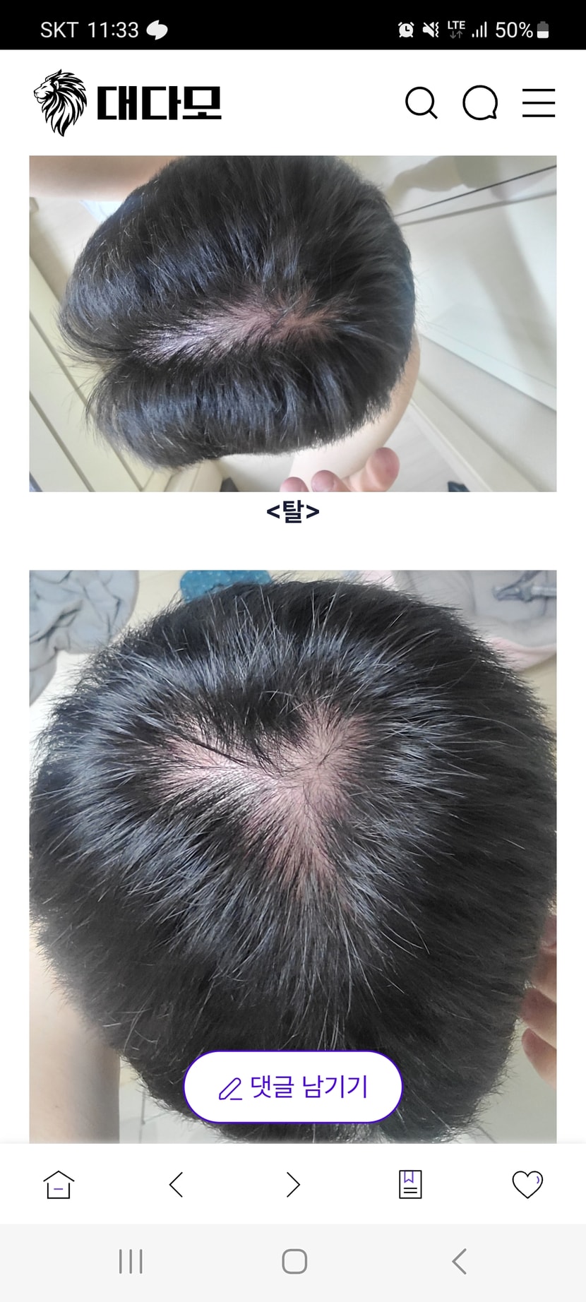治療前 - 3ヶ月目 - 9ヶ月目の順です 私の薄毛悩みは30代前半から始まりました。 最初は髪の毛がちょっと抜けるかなと思ったけど 時間が経つにつれて額のラインが だんだん上がっていくのが目に見えました   その時からピナステリドを服用し始めて ほぼ8年近く、地道に食べてきました そのおかげか、抜ける速度はある程度 掴める感じがあったし 不満なく維持していました   そしたら周りでドゥータステリドの方が効果があると言われて もっと攻撃的に管理してみたいと思って薬を変えました 約2年ほど服用しましたが、私の場合は副作用がかなり明確に現れました   体が変にしきりにだるく元気がなかったし、感情の起伏が生じて憂鬱感も感じました 単純に気のせいではなく、確かに薬のせいだという感じがしました 発毛効果も正直、期待ほど大きくありませんでした 結局6ヶ月前からはまたフィナステリッドに戻ってきて 幸いなことに体調はまた楽になりました   局所ミノキシジルも一緒に使用しましたが 毎日地道に塗るのが思ったより簡単ではなくて間欠的にだけ使いましたね   自分に合わない管理をしているんじゃないかと思って 相談に行って 院長が現在の状態がそんなに深刻ではないとおっしゃっていました   まだたくさん進んだ状態ではなくて 今からでも管理をしっかりすれば、 これからも十分に維持できるそうです   なので今回は、単に薬だけに依存するのではなく 積極的に頭皮の状態自体を改善してみようと思いました そして私は幹細胞治療についての説明を聞いて、計20回受けることに決めました   正直、治療を受ける前は 効果に対する疑いもあったし 「私が果たしてこんな施術まで 受けなければならないのか」とも思いました しかし、今は確かに満足しています   治療を始めてから6ヶ月ほど経ってから 頭皮が前よりはるかに 敏感にならなかったということを感じて 髪の太さも少しずつ厚くなる感じがありました   髪を洗う時に抜ける量も、 前より確実に減って 鏡を見るたびに頭頂部が目立って割れていた時代と比べると 今はかなり安定しているという感じがします   周りでも良くなったという話をしてくれて 自分でも確かに自信がついたことを感じますね   薄毛は行われる前に管理することが本当に重要だということを今回改めて感じました。 前は薬さえ飲めば大丈夫だろうと思ったのに 今は頭皮環境を健康に保つこともそれだけ重要だということが分かりました   同じ悩みをしている方々なら 手遅れになる前にクリニックで状態を正確に診断してもらって 自分に合った治療方向を探すのが一番いいと思います 残りの回数もちゃんともらって 頭の心配をしない日が来てほしいです