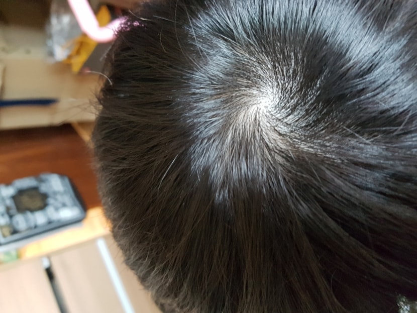 脱毛がもっとひどかった右側は少しまばらな部分があります。左側はもう目立たないほどよく定着したようです。薬を地道に飲むのが重要だというので、ちゃんと飲もうと努力中です。大金を使ったのに結果が満足してよかったです!