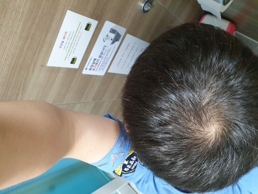 こんにちは. 手術してすぐに体験談を残そうと思ったのですが、簡単ではありませんでした。 それで、2週目の経過を報告してから体験談を書いてみます。 私は8月27日に植毛をしました。 時間が本当に早くてもう2週間が過ぎましたね。 昨日病院に行って2週目の経過チェックもしてきました。 院長が見て、今からショックロスが始まる時期だと、抜けたらまた上がってくるからあまり不安にならないようにとおっしゃってくれました。 髪の毛が抜ける過程だと思えばいいとおっしゃっていました。 私はM字の部分を少し埋めて、前髪、そして頭頂部の方を中心に移植しました。 計4,000本ほど進行しました。 再相談の際、院長が私の頭の形、ヘアスタイルを見てこうするのが最も自然だと推薦してくださったので、そのまま信じて任せました。 手術室に入る時、すごく緊張したんですが、注射が入る時にチクチクする感じがあって、それ以外は大丈夫でした。 麻酔がちゃんと効いたので、その後は痛みはありませんでした。 採取して移植する過程が続いたが、大体5時間?6時間?正道病院にいたようです。 私が普段、髪を短く切って帽子もよくかぶるスタイルなので、悩んだ末に非切開の剃髪方式で進めました。 院長が直接採取から移植まで全部してくださったんですが、見ながらも几帳面だというのが感じられたんですよ。 手術が終わってから薬を処方してくれながら、お酒やタバコは最低2週間は避けるようにと強調されました。 タバコはもともと吸わなくて大丈夫でしたし、お酒はたまに飲む方なので我慢するのがそれほど難しくはありませんでした。 手術して2~3日くらいは痛みよりは痒みのためちょっと大変でした。 手がしきりに行こうとするのを我慢して耐えるのがそれとなく大変でした。 それでもその時期が過ぎてからは大きな不便はありません。 まだ手術したばかりなので、目立った変化はわかりません。 それでも院長先生のおっしゃる通り、丁寧に管理して待っていれば豊かになると信じています。 私のように悩んでいる方々に少しでも参考になればと思います。 写真は昨日撮ったものです。 これから状態チェックも兼ねて、たまに写真を撮って体験談をアップします。