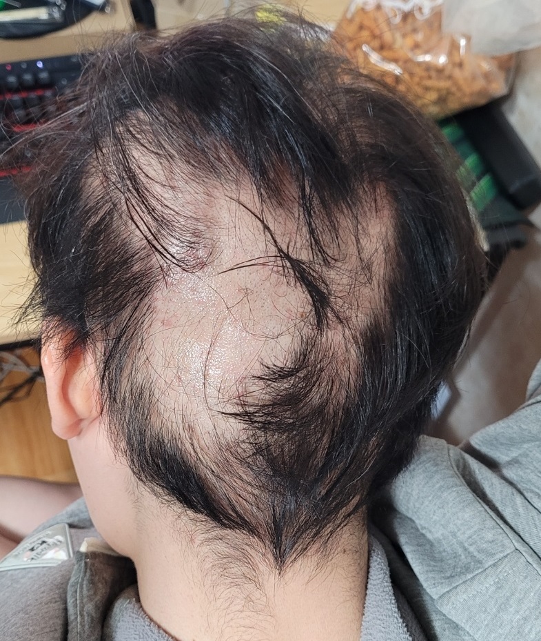 こんにちは. 手術してすぐに体験談を残そうと思ったのですが、簡単ではありませんでした。 それで、2週目の経過を報告してから体験談を書いてみます。 私は8月27日に植毛をしました。 時間が本当に早くてもう2週間が過ぎましたね。 昨日病院に行って2週目の経過チェックもしてきました。 院長が見て、今からショックロスが始まる時期だと、抜けたらまた上がってくるからあまり不安にならないようにとおっしゃってくれました。 髪の毛が抜ける過程だと思えばいいとおっしゃっていました。 私はM字の部分を少し埋めて、前髪、そして頭頂部の方を中心に移植しました。 計4,000本ほど進行しました。 再相談の際、院長が私の頭の形、ヘアスタイルを見てこうするのが最も自然だと推薦してくださったので、そのまま信じて任せました。 手術室に入る時、すごく緊張したんですが、注射が入る時にチクチクする感じがあって、それ以外は大丈夫でした。 麻酔がちゃんと効いたので、その後は痛みはありませんでした。 採取して移植する過程が続いたが、大体5時間?6時間?正道病院にいたようです。 私が普段、髪を短く切って帽子もよくかぶるスタイルなので、悩んだ末に非切開の剃髪方式で進めました。 院長が直接採取から移植まで全部してくださったんですが、見ながらも几帳面だというのが感じられたんですよ。 手術が終わってから薬を処方してくれながら、お酒やタバコは最低2週間は避けるようにと強調されました。 タバコはもともと吸わなくて大丈夫でしたし、お酒はたまに飲む方なので我慢するのがそれほど難しくはありませんでした。 手術して2~3日くらいは痛みよりは痒みのためちょっと大変でした。 手がしきりに行こうとするのを我慢して耐えるのがそれとなく大変でした。 それでもその時期が過ぎてからは大きな不便はありません。 まだ手術したばかりなので、目立った変化はわかりません。 それでも院長先生のおっしゃる通り、丁寧に管理して待っていれば豊かになると信じています。 私のように悩んでいる方々に少しでも参考になればと思います。 写真は昨日撮ったものです。 これから状態チェックも兼ねて、たまに写真を撮って体験談をアップします。
