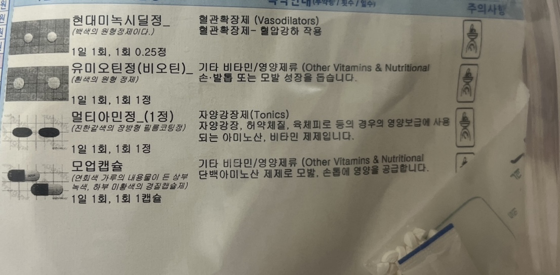 すべて[ミノキシジル錠] 미녹시딜 처방 받았는데 부작용