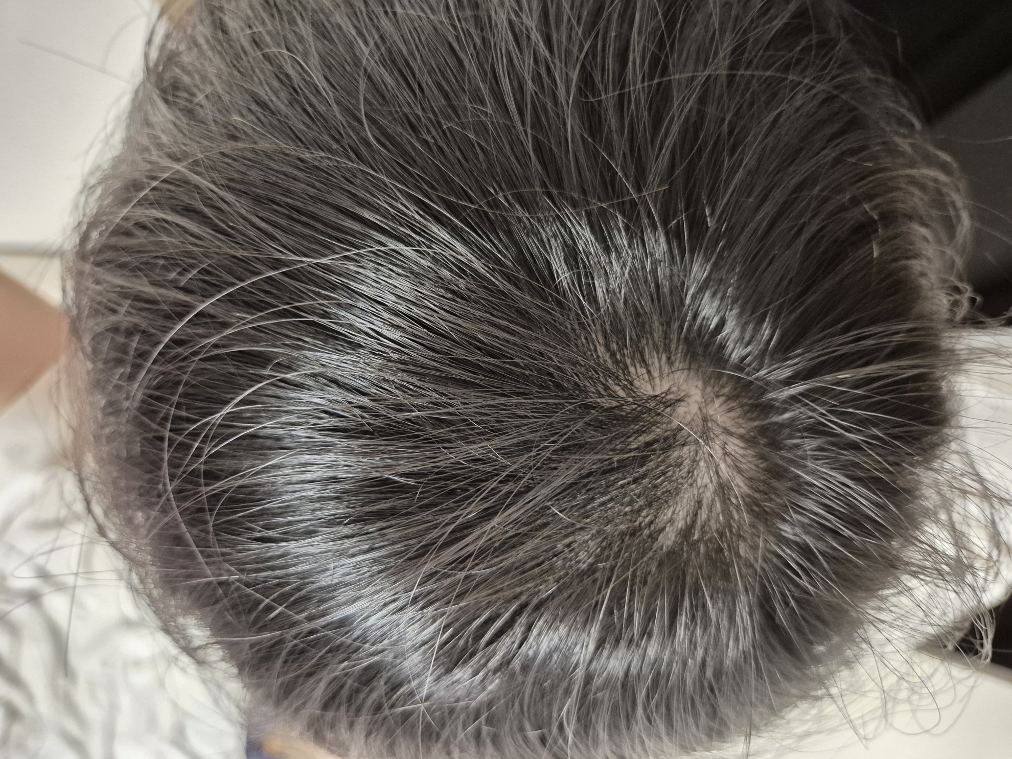 いつからか頭頂部の方がだんだん薄くなるのが鏡を見るたびにとても気になるんです。 前髪やMM字、全部頭頂部は本人が見るより周りの人が先に気づく場合が多いので、避けるよりぶつかった方がいいと思い、勇気を出して病院のクリニック談を受けてみました。 相談前に撮った写真を拡大してみたら、思ったより面積がかなり広く、全体的に髪の毛が薄くて密度が低いとおっしゃっていました。 院長が頭皮の状態を詳しく見ながら、頭頂部の方は生着率自体は良い方ですが、面積が広い場合には2000毛だけでは考える豊かな感じを出すのが難しいと説明してくれました。 最初は2000本だと結構多いんじゃないかと思ったんですが、実際には頭頂部全体をカバーするには足りないかもしれないとおっしゃっていました。 そして決定的に、私の後頭部の状態が少し薄くて密度が低いので、あまりにも無理に多くの量を採取するのは難しいかもしれないとおっしゃいました。 それで院長がおすすめしてくださった方法が、頭頂部2000毛の移植と毛包幹細胞治療の並行でした。 毛包幹細胞治療は、既存の毛髪の成長環境を改善し、移植された毛株、生着を助ける役割をするそうです。つまり、移植をしながらも残っている髪の毛を最大限生かす方向で治療を並行するのです。 相談の中で一番良かったのは、単にもっとたくさん植えようというのではなく、私の毛髪状態と頭皮環境を考慮して現実的な方法を提示してくださったという点でした むやみに大量を植えるより、生着率と毛質の改善を一緒に考慮するのが結果的にはるかに自然で効率的だという説明が理解できました そのように植毛、毛包幹細胞の注射治療を受けることになり、すでに治療を始めて1年が経ちました。 治療を受ける時、髪がいつ上がってくるのかと思いながら毎日鏡だけ見ていましたが、1年が経つとこんなにぎっしりした髪になって改めて嬉しいです