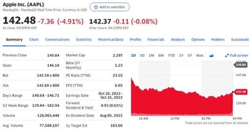 米証券市場の「大将株」アップルが5%近く急落