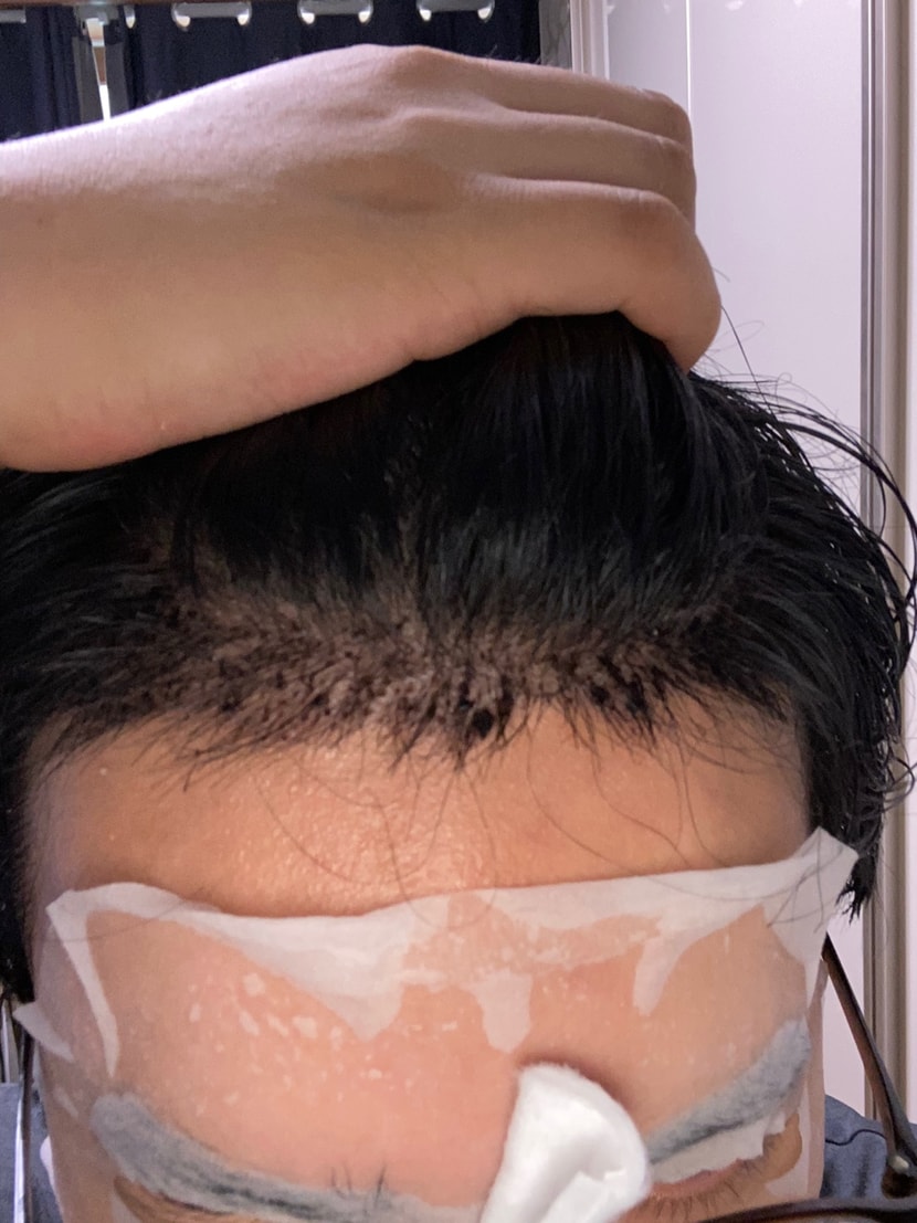 初日は余計に髪を触ったらダメになるかと思って、最初から触らずに翌日そこに行ってガーゼを取り除いてシャンプーで髪を洗ってきた後に
