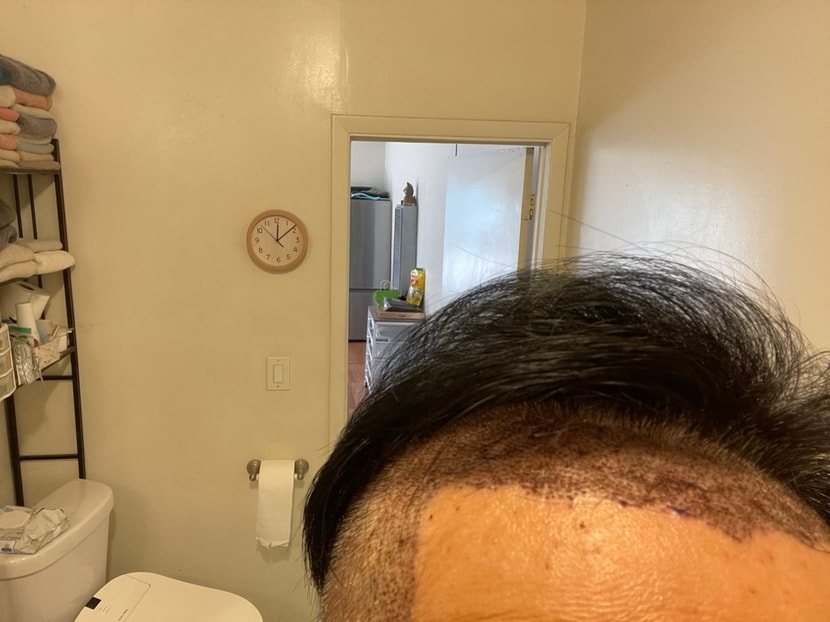 こんにちは。10月13日に植毛手術をしましたが、少し遅れて手術直後に体験談上げます。 手術当日の4時間前に水付きで絶食するように言われたので、絶食してクリニックに伺いました。 その後薬局に行って手術直後に飲む薬と塗る薬を処方してもらって院長室に行ってヘアラインをそして最終的にデザインをどうするか決めました.(この時私が植毛相談を約3週間前に受けたがその時より薄毛がもっと進行されたとおっしゃってくださいました.泣) 結論的に院長が私の髪の状態を見て、額のラインを下ろすより、少しあるm字を補強して全体的に明るい前髪に1400毛包を植えることにしました。 この時、院長先生は患者さんの言うことをよく聞いてくださり、返事も親切にしてくださると感じました。 手術は睡眠麻酔、部分麻酔、毛包採取、睡眠麻酔、部分麻酔、毛包移植の順で行われ、約3時間ほどかかって終わりました。 個人的に手術中の苦痛はほとんどなかったです.(看護師先生もとても親切でした...!)手術直後、院長先生が手術はとてもうまくいったと言いました。 手術が終わって後頭部がヒリヒリしましたが、我慢できましたし、生着スプレーを1時間おきに吹きかけました。(私はクリニックで提供した入院室?で一晩泊まりました 結果的に手術前、中、後の痛みがほとんどない点と(これはケバケだろう)、職員たちの親切さ、手術直後の入院室提供などの面で私はとても満足しました。 植毛、生着がどうか非常にうまくいくことを願う気持ちと、この文が誰かの役に立つことを願う気持ちで文を終えます。 次は2週目の時、体験談で書き込みます。