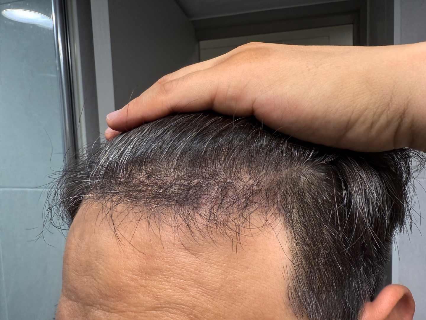 こんにちは. 手術してすぐに体験談を残そうと思ったのですが、簡単ではありませんでした。 それで、2週目の経過を報告してから体験談を書いてみます。 私は8月27日に植毛をしました。 時間が本当に早くてもう2週間が過ぎましたね。 昨日病院に行って2週目の経過チェックもしてきました。 院長が見て、今からショックロスが始まる時期だと、抜けたらまた上がってくるからあまり不安にならないようにとおっしゃってくれました。 髪の毛が抜ける過程だと思えばいいとおっしゃっていました。 私はM字の部分を少し埋めて、前髪、そして頭頂部の方を中心に移植しました。 計4,000本ほど進行しました。 再相談の際、院長が私の頭の形、ヘアスタイルを見てこうするのが最も自然だと推薦してくださったので、そのまま信じて任せました。 手術室に入る時、すごく緊張したんですが、注射が入る時にチクチクする感じがあって、それ以外は大丈夫でした。 麻酔がちゃんと効いたので、その後は痛みはありませんでした。 採取して移植する過程が続いたが、大体5時間?6時間?正道病院にいたようです。 私が普段、髪を短く切って帽子もよくかぶるスタイルなので、悩んだ末に非切開の剃髪方式で進めました。 院長が直接採取から移植まで全部してくださったんですが、見ながらも几帳面だというのが感じられたんですよ。 手術が終わってから薬を処方してくれながら、お酒やタバコは最低2週間は避けるようにと強調されました。 タバコはもともと吸わなくて大丈夫でしたし、お酒はたまに飲む方なので我慢するのがそれほど難しくはありませんでした。 手術して2~3日くらいは痛みよりは痒みのためちょっと大変でした。 手がしきりに行こうとするのを我慢して耐えるのがそれとなく大変でした。 それでもその時期が過ぎてからは大きな不便はありません。 まだ手術したばかりなので、目立った変化はわかりません。 それでも院長先生のおっしゃる通り、丁寧に管理して待っていれば豊かになると信じています。 私のように悩んでいる方々に少しでも参考になればと思います。 写真は昨日撮ったものです。 これから状態チェックも兼ねて、たまに写真を撮って体験談をアップします。