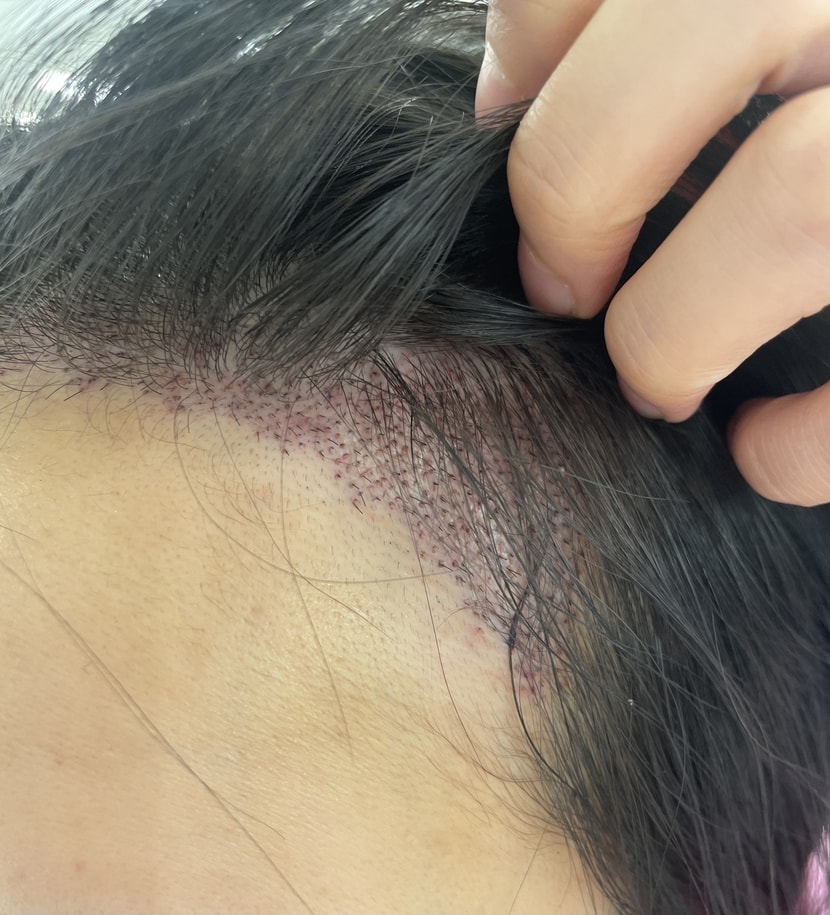 おでこが少し広い方で、M字も少しあって、髪を上げたり上げたりするたびにストレスがひどかったです。涙 それで悩んだ末にヘアライン植毛をもらいました! 最初はすごくぎこちなかったです そして暗黒期にはすごく不安でもありました でも3ヶ月くらい経つと産毛が伸び始め、6ヶ月くらいからはラインがだんだん定着していくのが見えました 今が9ヶ月目ですが前より額が狭くなってラインが自然に続いてとても満足です M字も充実して、前髪を下ろさなくても今は自信を持って通えるようになりました。 正直、移植を受ける前はバレるんじゃないかと 心配も多かったんですが、今は元々私の髪のように自然で 切開痕も全く見えないので満足度が高いです